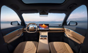 Bước vào bên trong Geely EX5 EM-i, anh sẽ choáng ngợp trước khoang lái mang hơi thở tương lai với chất liệu da cao cấp (2 tông màu: Nâu Hổ Phách và Xám Phi Thuyền).